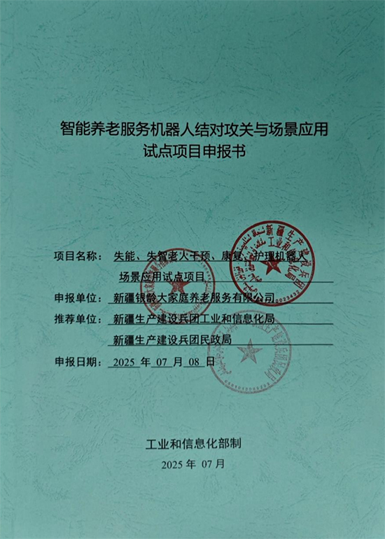 针对新疆地区认知症老人发病率全国最高的现状,我公司与新疆银龄老年健康管理有限公司、上海大学合作,重点研发“认知症老人干预、康复、护理机器人”。 7月份,与新疆银龄老年健康管理有限公司为牵头单位,我公司和上海大学作为参与单位,申报了国家工信部、民政部关于《失能、失智老人干预、康复、护理机器人场景应用试点项目》的试点项目。该项目为新疆生产建设兵团系统唯一项目,已由兵团工信局、民政局向国家推荐。